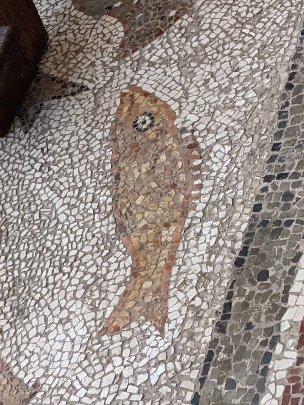 Two biblical stories that feature prominently in the mosaic are those of Jonah (of Whale fame) and Noah and the flood.