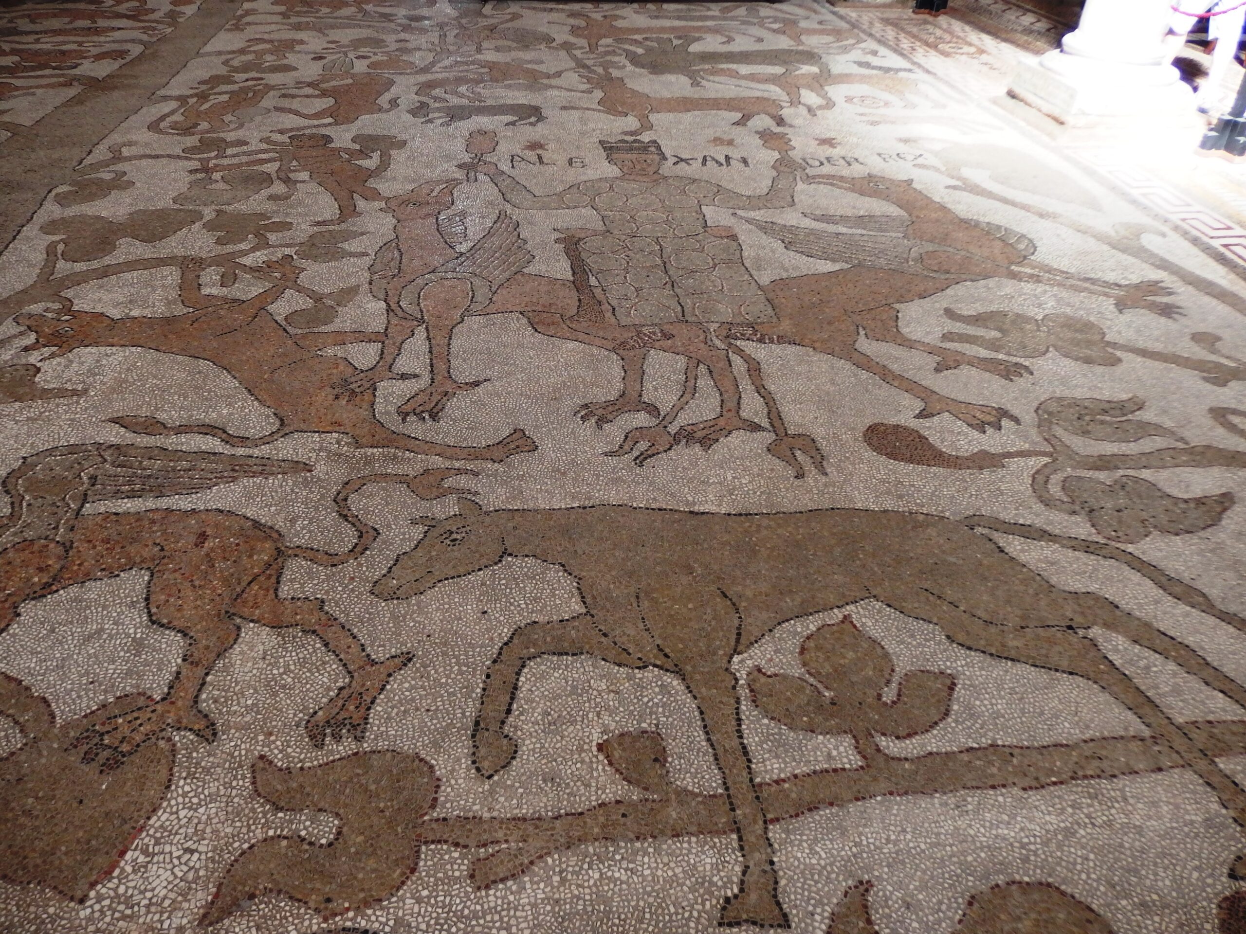 When the bishop wanted an artist to make a mosaic floor for Otranto’s Cathedral in 1163, he looked no further than the Abbey of St. Nicholas of Casole. He engaged a priest named Pantaleone, the head of the faculty of painting at the abbey. In two years, Pantaleone (and presumably a team of helpers) had created a mosaic made up of more than 600,000 tesserae.