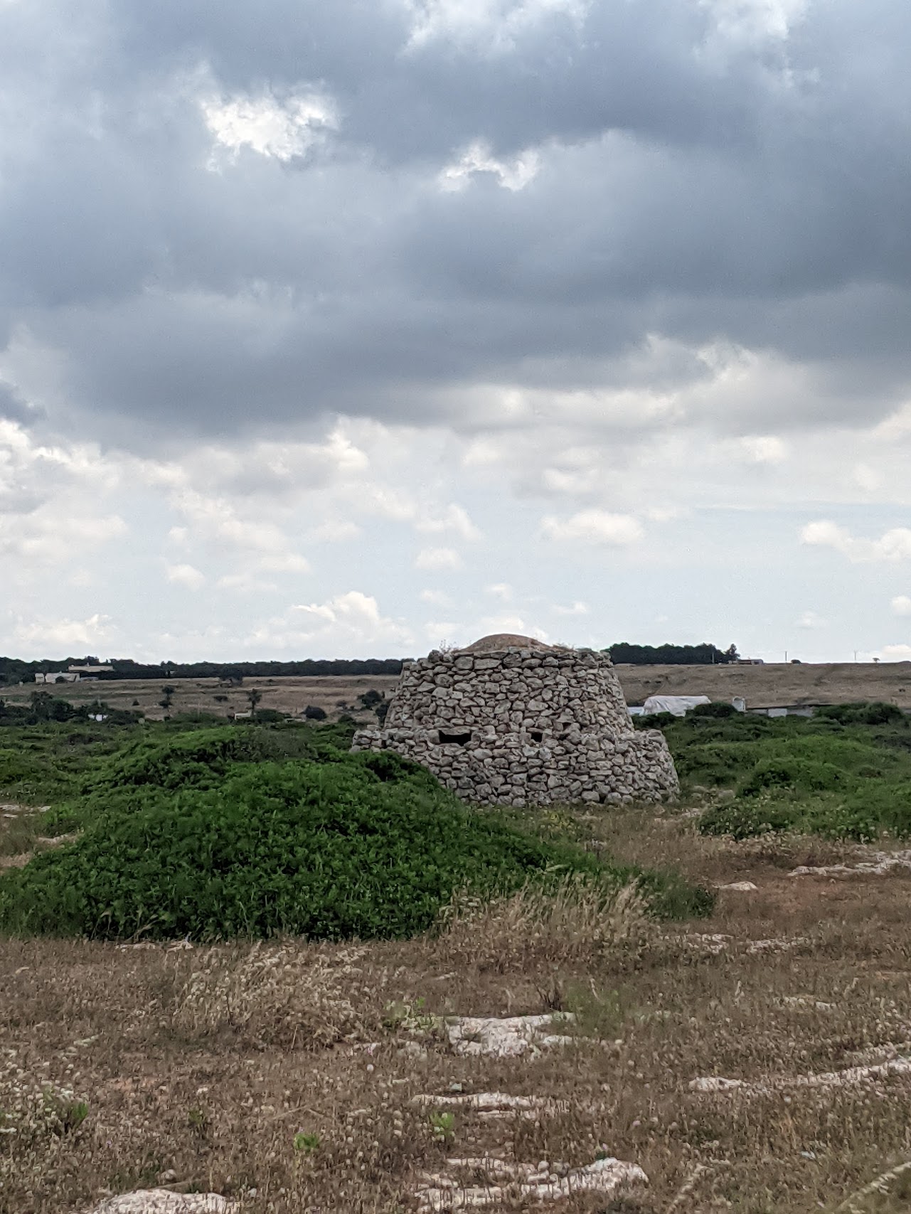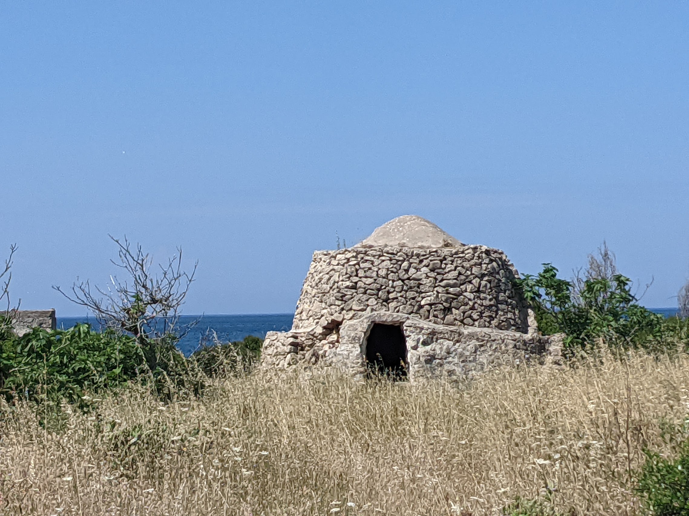 All over the countryside there are little conical stone houses called trulli. The most famous ones are in Alberobello, where they are whitewashed and inhabited. But you can see other, cruder ones, in the wild, where they were generally constructed as temporary field shelters and storehouses or as permanent dwellings by small-scale landowners or agricultural labourers.