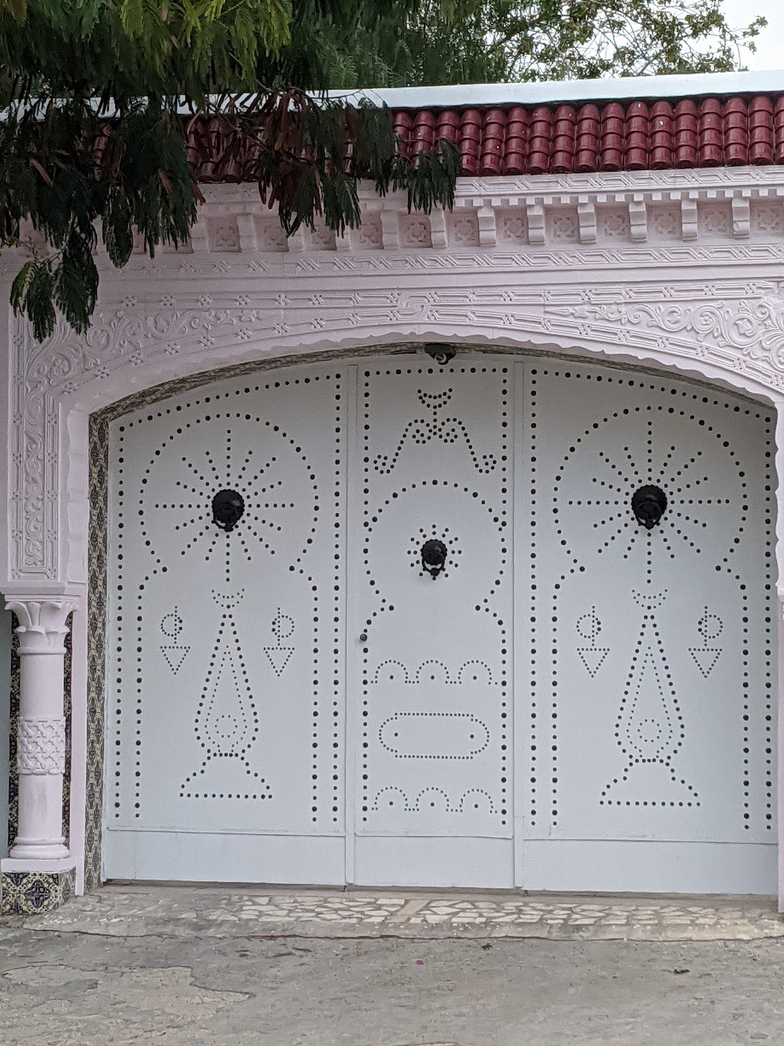 Tunisia has very distinctive gates, white with perforations that spell out a design.