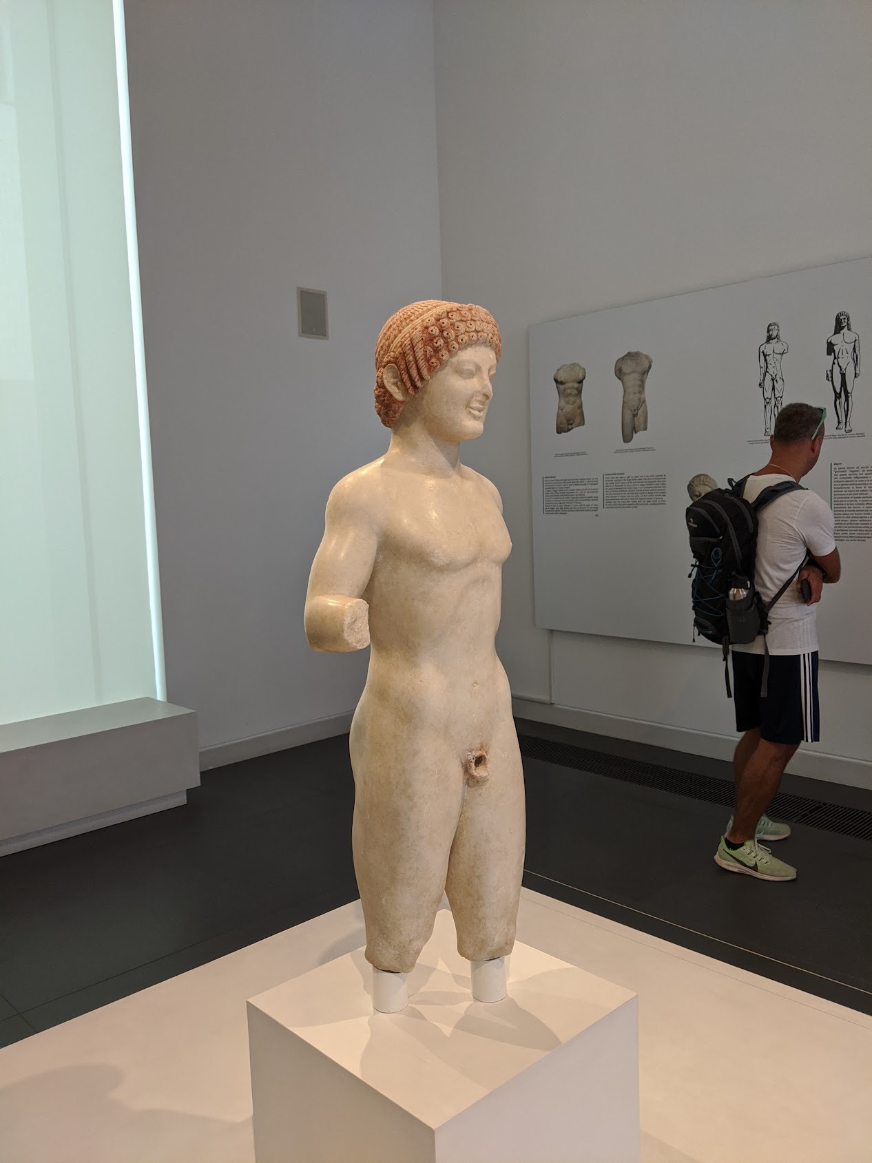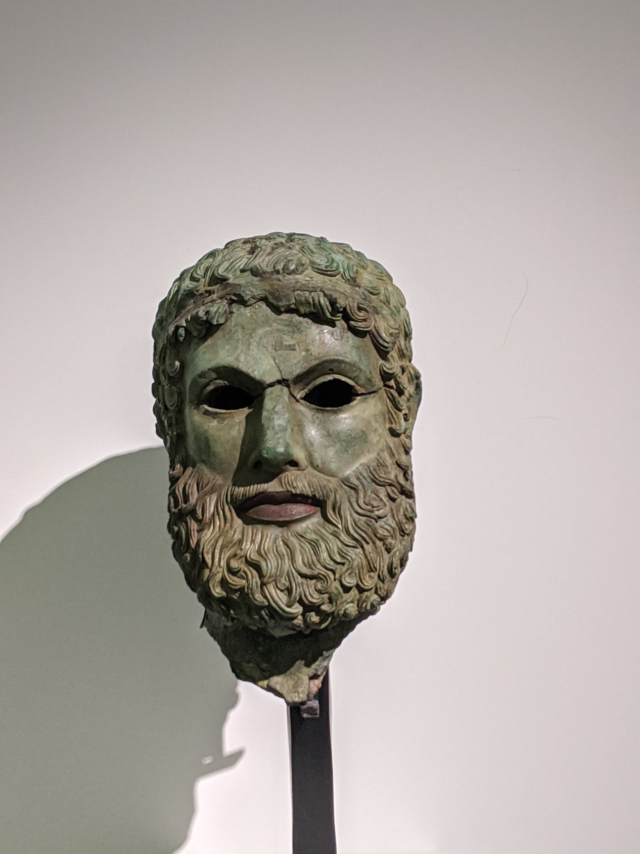 One thing I’m glad I did while I was there was take a train down to Reggio Calabria to see the Riace Warriors. These are two ancient bronze statues cast about 450 BCE and were aboard a ship that wrecked somewhere near Riace. They were found in 1972 and now live in the Museo Nazionale della Magna Grecia, in a climate-controlled room where only a small number of people can enter at any given time. Apart from the statues, there were plenty of other amazing pieces.